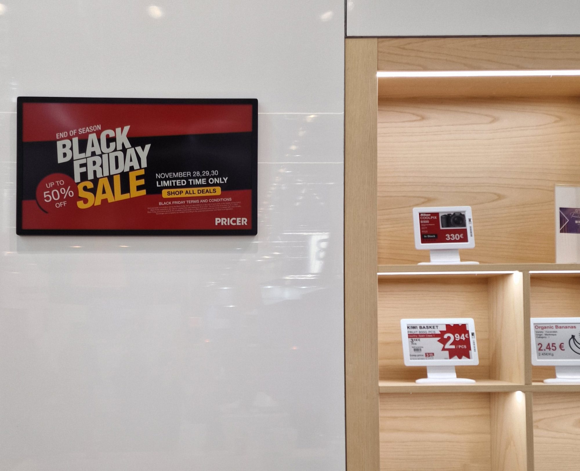 Az elérhető címkeméretek bővítésének köszönhetően bemutatásra kerültek a Pricer A4-es méretnél nagyobb ESL-jei is, melyekből szintén az igencsak mutatós, négyszínű verziókkal találkozhatott a közönség. A leendő vásárlók számára az ugyancsak újdonságnak számító Pricer Plaza-t is elhozta a vállalat, mellyel egy extra szolgáltatáscsomagot kínálnak a megrendelőknek. A felhő alapú felügyeleti rendszer képes az üzleten belüli infrastruktúra kifinomult kezelésére, legyen szó önálló üzletről vagy akár komplett bolthálózatról. A csomag olyan elemeket tartalmaz, mint a Click & Collect és a termékkeresés.